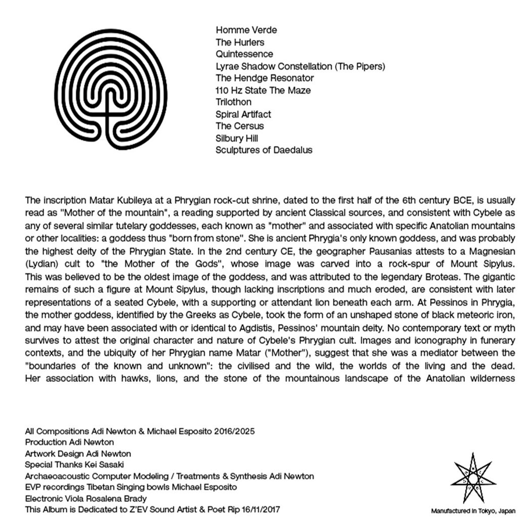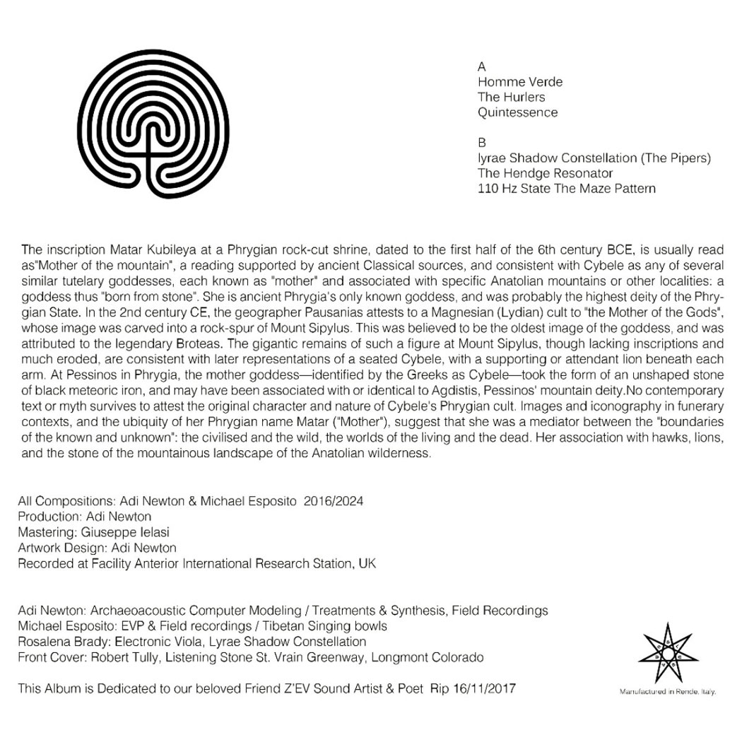 The Album explores concepts from Archaeoacoustic theories and the spiritual Mythological beliefs of Ancient cultures such as the Phrygian and Magnesian. the Name MATAR is derived from the Phrygian name meaning (‘Mother’). At Pessinos in Phrygia, the mother goddess identified by the Greeks as Cybele took the form of an unshaped stone of black meteoric iron, and may have been associated with or identical to Agdistis, Pessinos’ mountain deity.